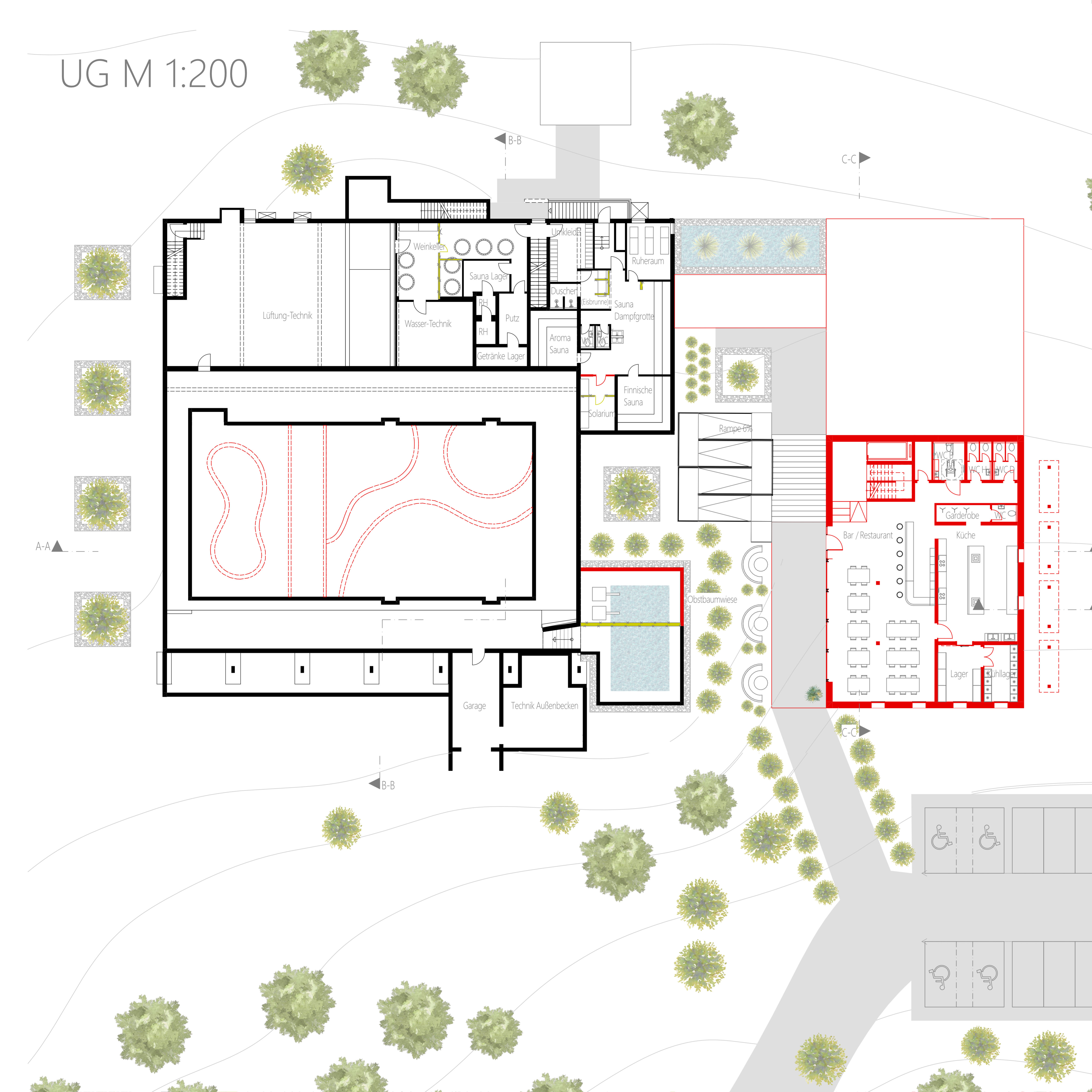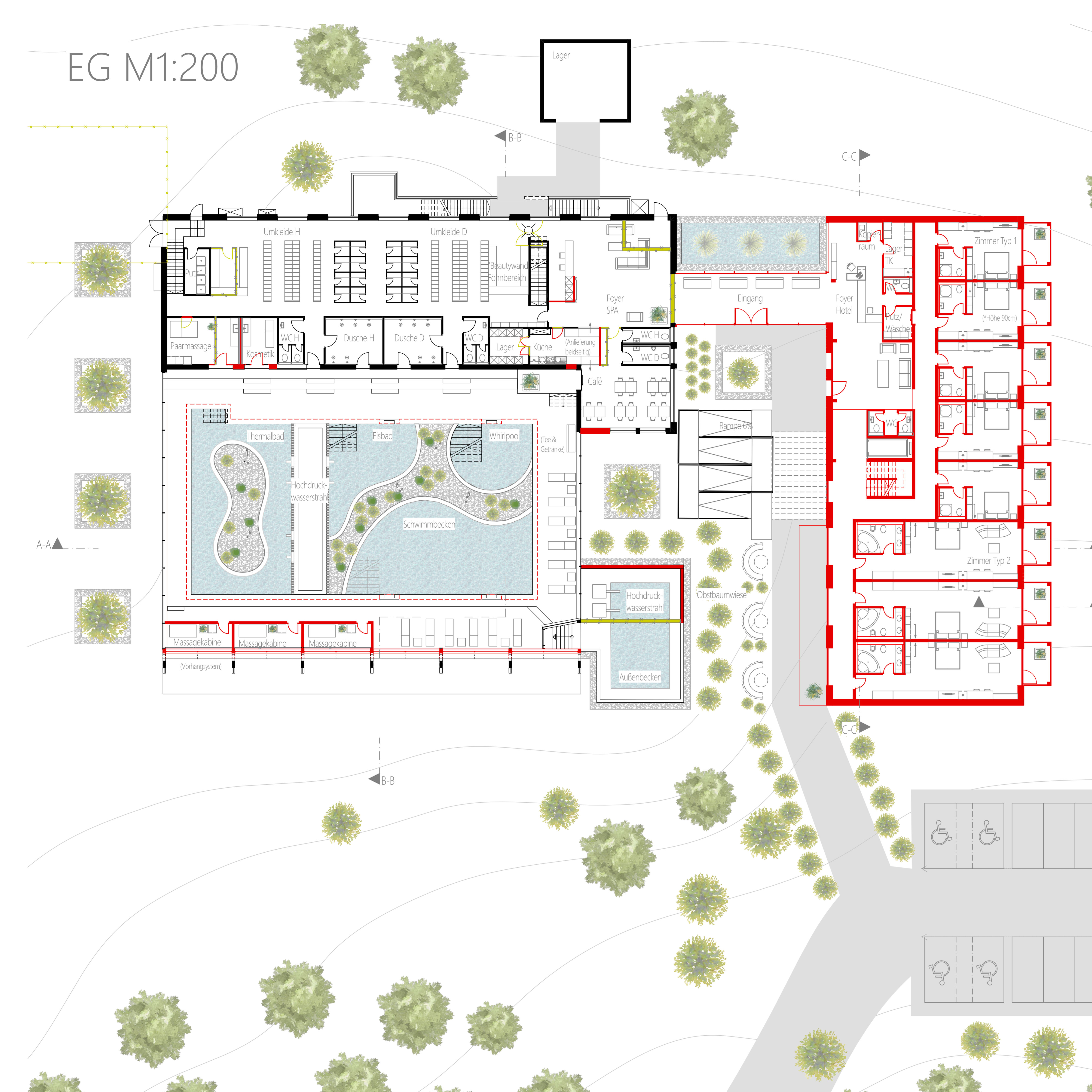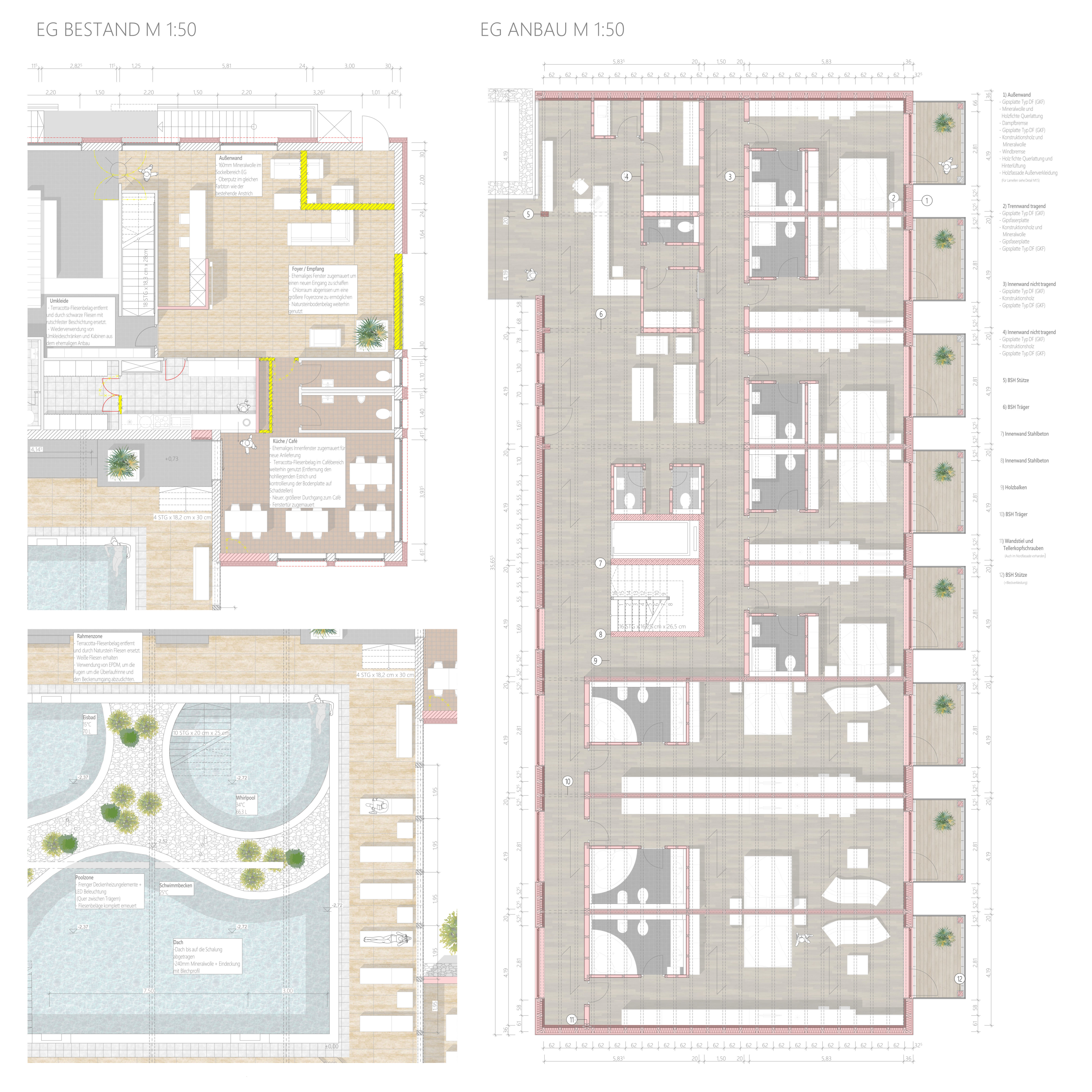 Das Almarin-Hallenbad in Mönchsdeggingen wurde aufgrund fehlender Nutzungsmöglichkeiten und notwendiger Sanierungsmaßnahmen aufgegeben. In dieser Bachelorarbeit wurde ein Konzept zur Umnutzung des Bestandsgebäudes entwickelt, wobei die Entscheidung auf die Transformation zu einem Spa- und Hotelkomplex fiel.