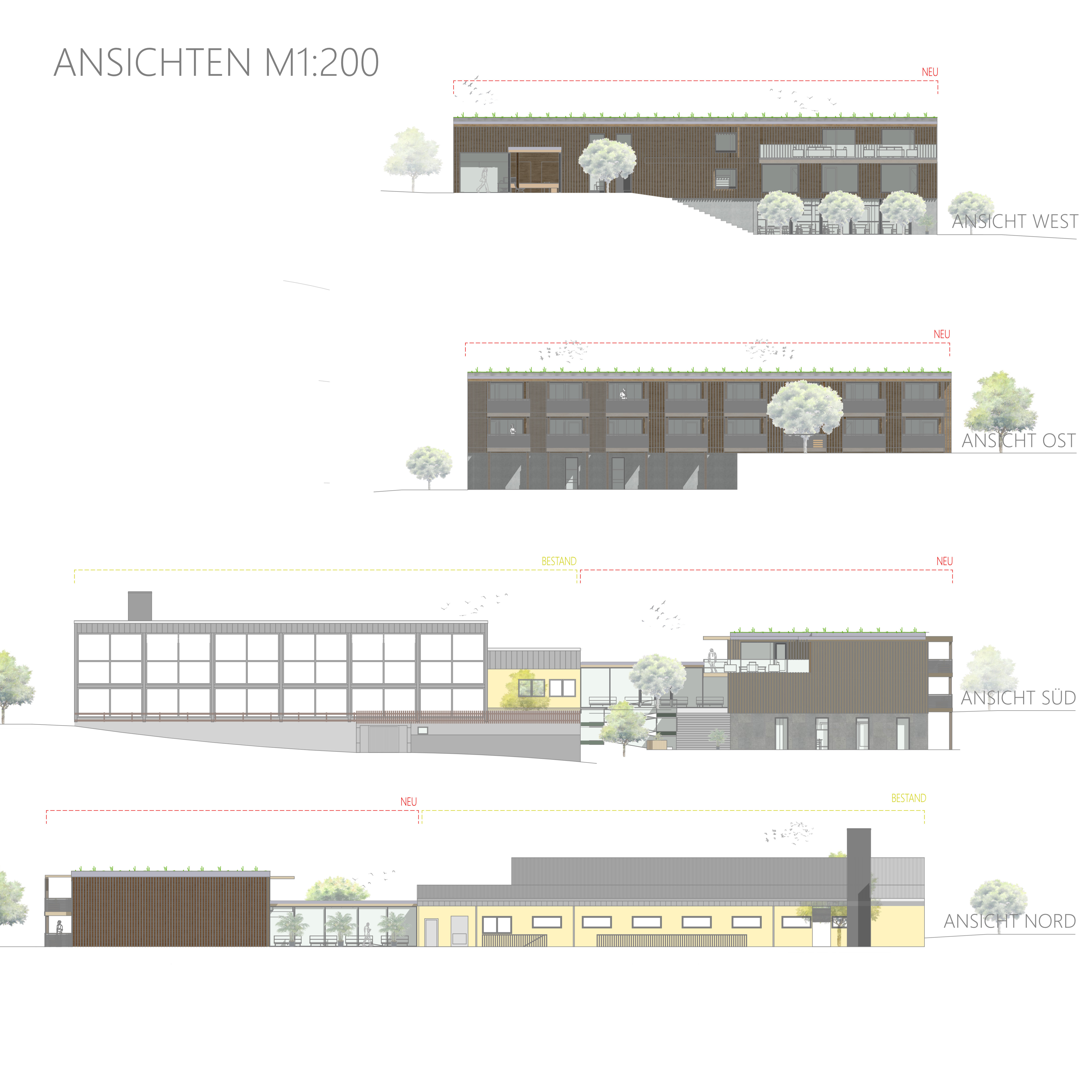 Das Projekt umfasst eine Erweiterung des Bestands, die im Einklang mit der bestehenden Struktur und der lokalen Topographie steht. Dabei wurden nachhaltige Bauweisen integriert, um sowohl den ästhetischen als auch den funktionalen Anforderungen gerecht zu werden.